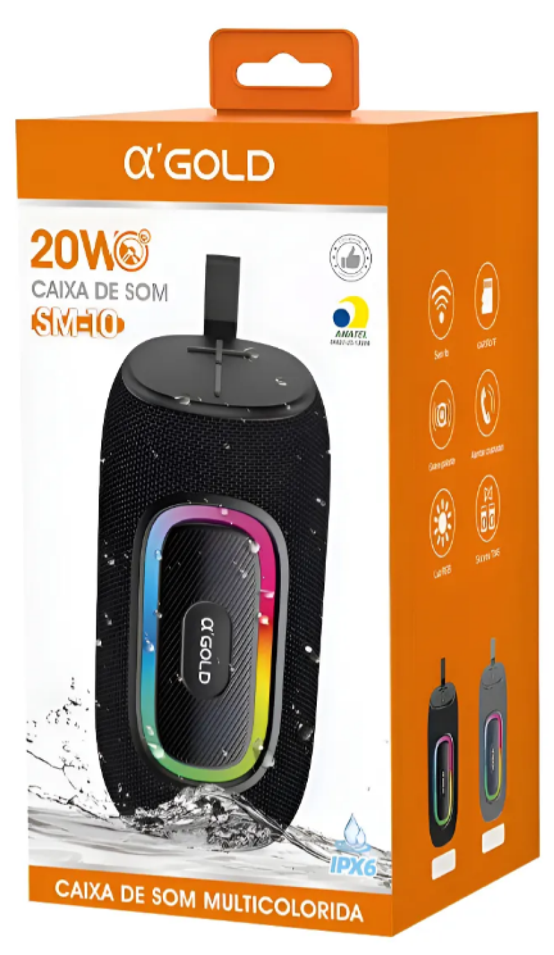 Caixa De Som Bluetooth Ipx6 20w Sm-10 Agold Cor Preto