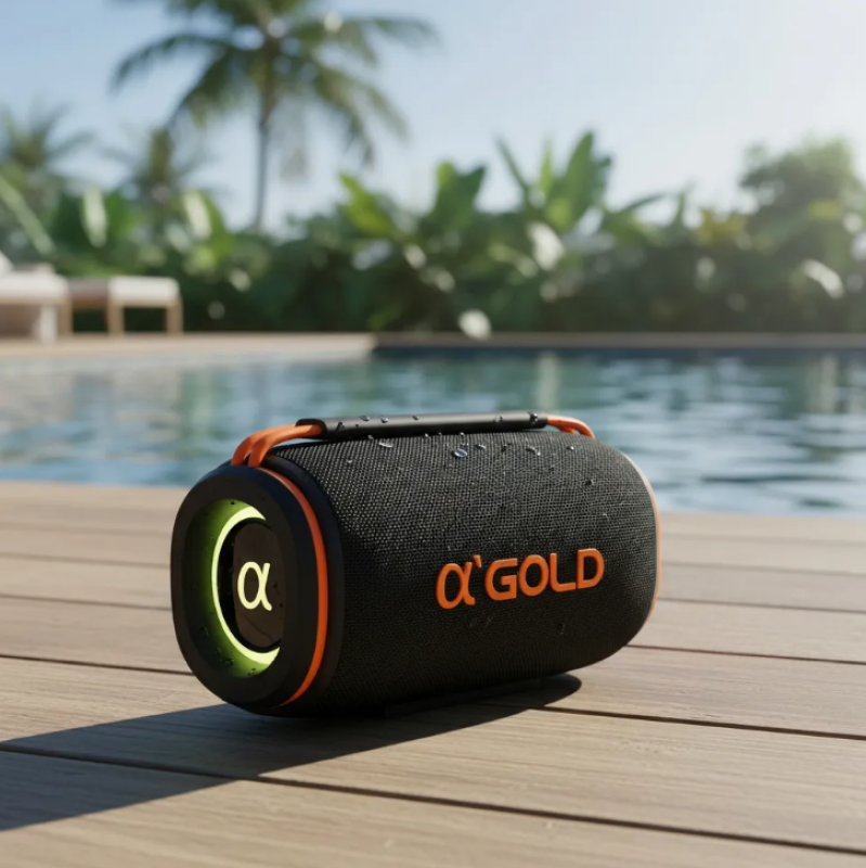 Caixa De Som Portátil Agold Sm-33 15w Bt À Prova D'água Preta/laranja 220v