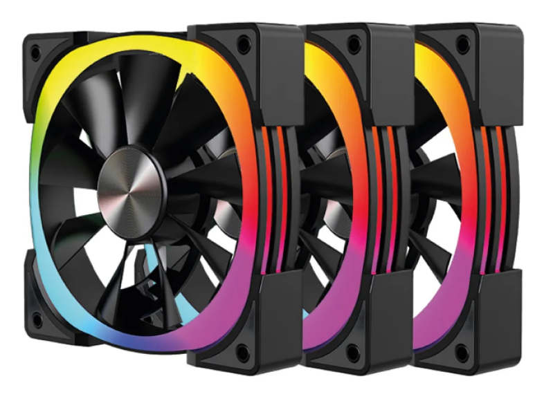 KIT 3 FANS PRETO CONTROLAVEL K04ARGB LED ARGB 120MM BLUECASE - BOX / CONECTOR 5V PLACA-MAE / SATA