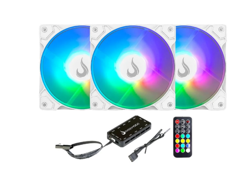 KIT COM 3 VENTOINHAS RISE MODE Z LED 5V 120MM LED ARGB BRANCO RMZLD5VARGBW
