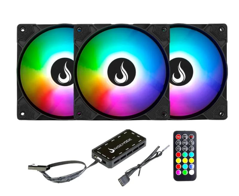 KIT COM 3 VENTOINHAS RISE MODE Z LED 5V 120MM LED ARGB PRETO RMZLD5VARGBB