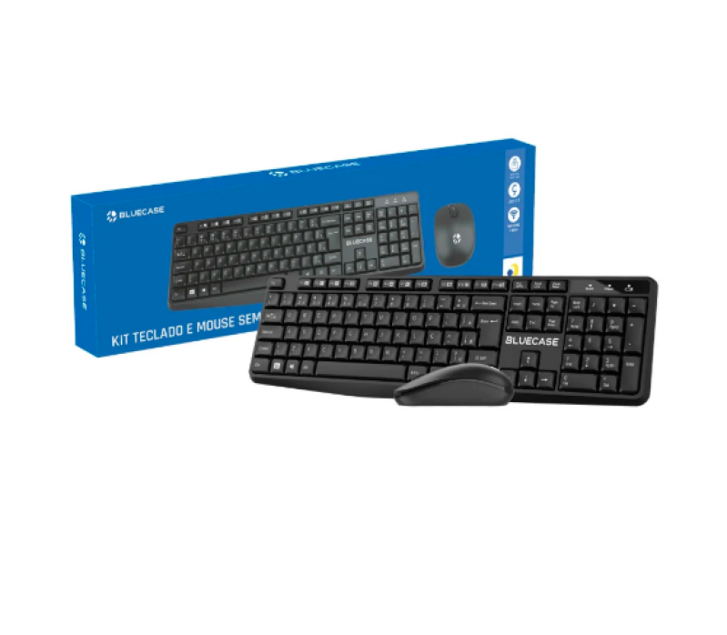 KIT TECLADO E MOUSE SEM FIO PRETO BMTW01 BLUECASE - SEM FIO / PILHA / ABNT2
