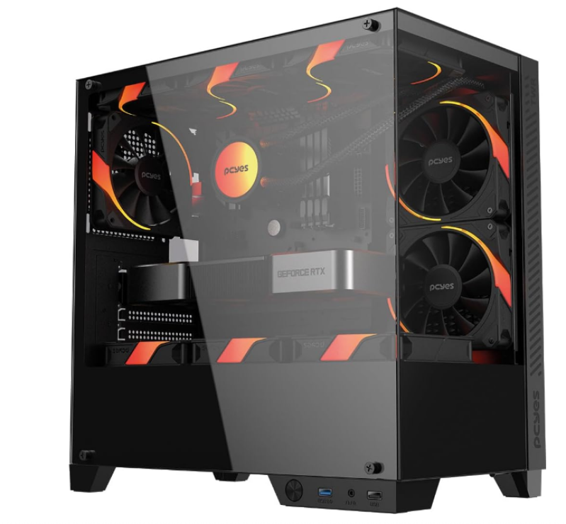 PCYES ForceField TWR Black Vulcan - GFFTWRBV: Gabinete Gamer Mid-tower com Vidro Temperado e Suporte para até 9 Fans de 120mm