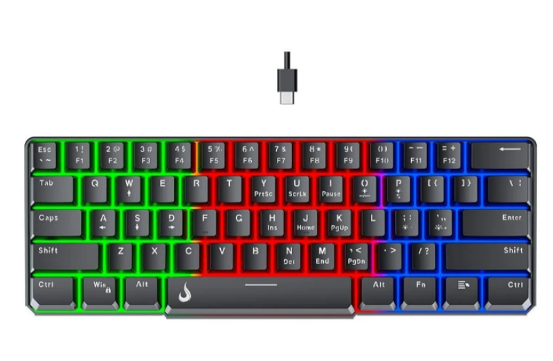 TECLADO SEMI MECANICO GAMER RISE MODE G2 MINI RGB USBC LAYOUT 60 PRETO RMTG02B